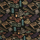 - Color: Black with multicolored STEAM symbols chalkboard print