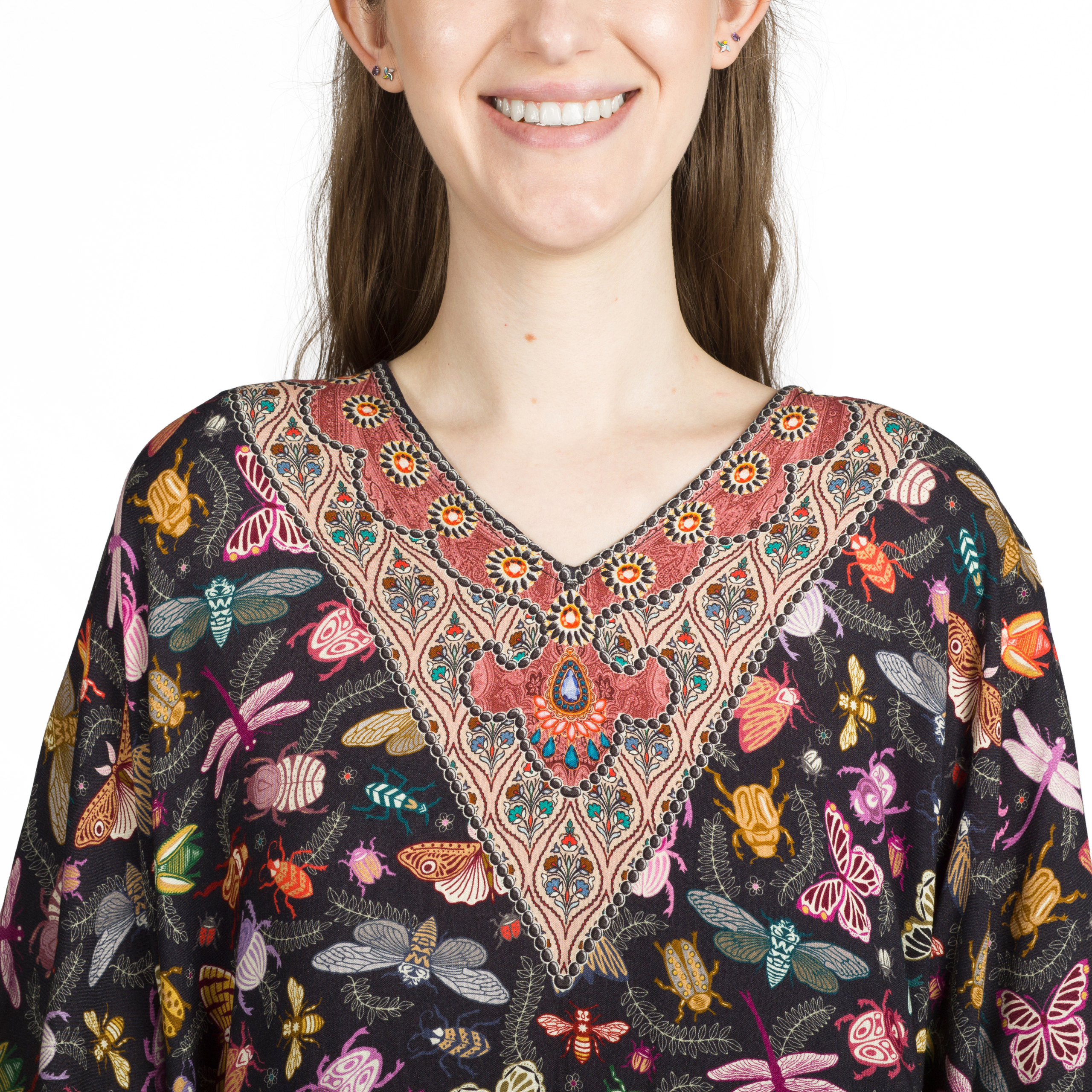 With its flattering silhouette and attention to detail, you can step into a world of imagination and style with our Doodle Bugs Kaftan!