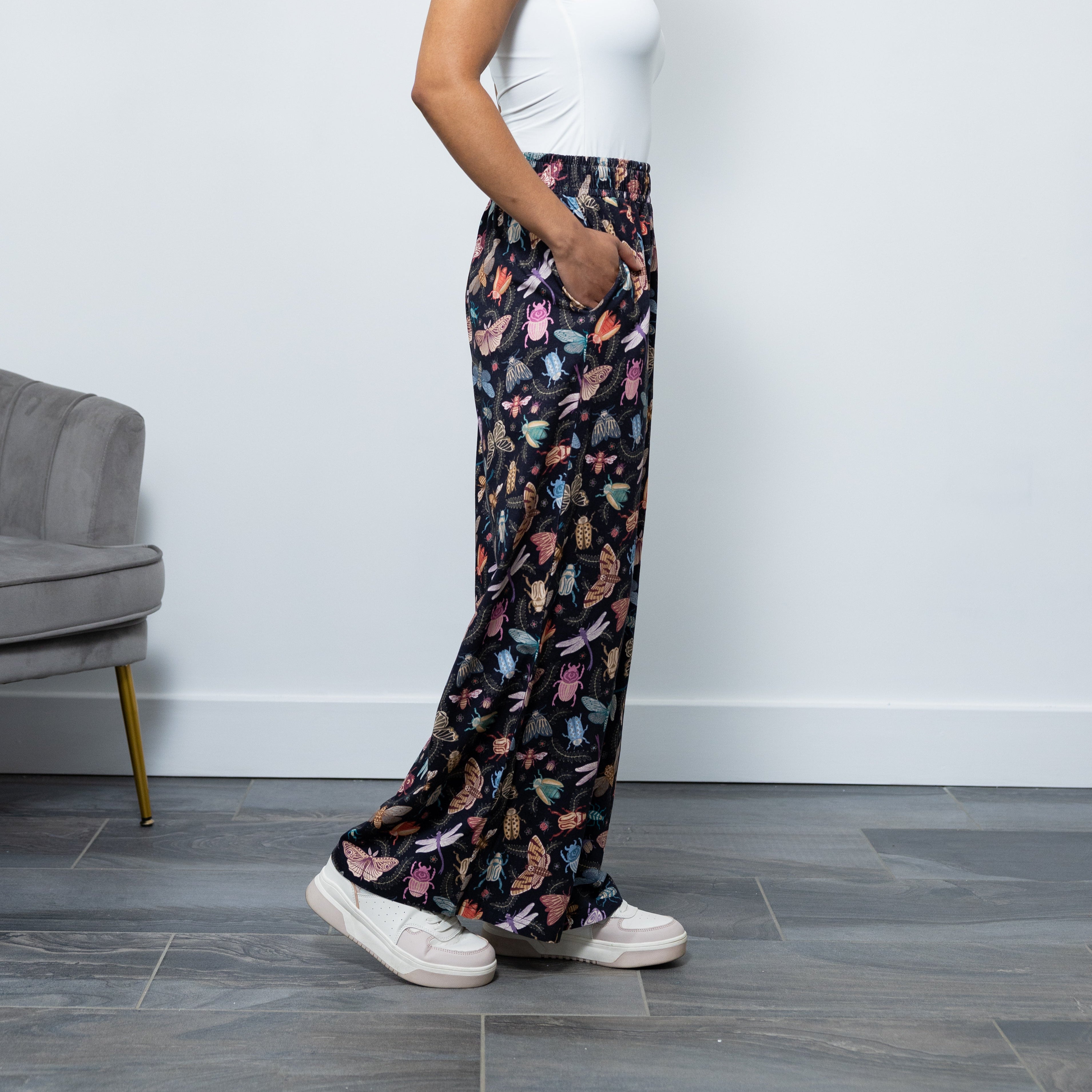 With its flattering silhouette and attention to detail, you can step into a world of imagination and style with our Doodle Bugs Palazzo Pants!