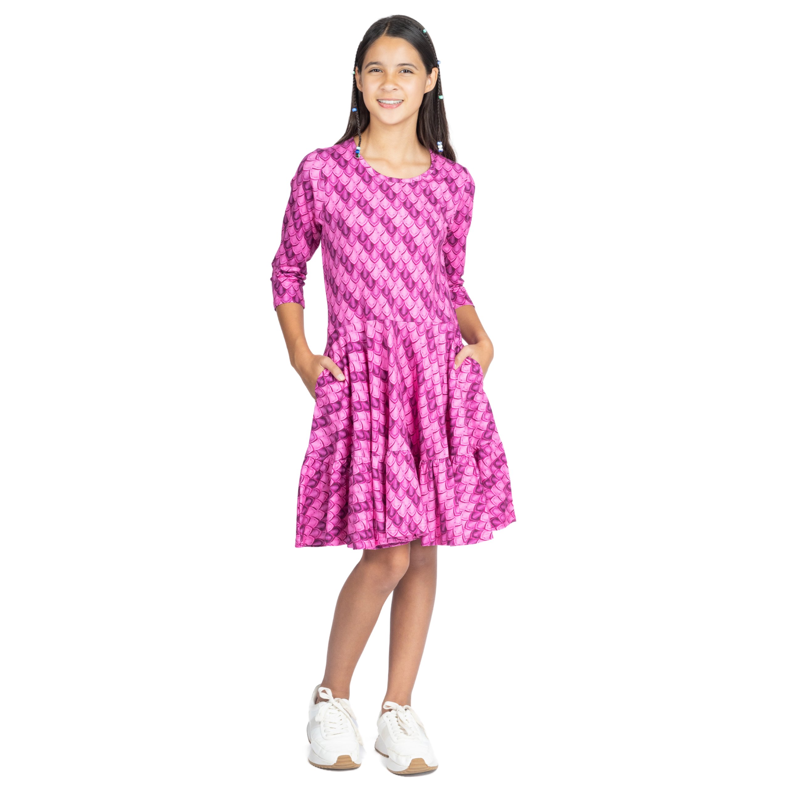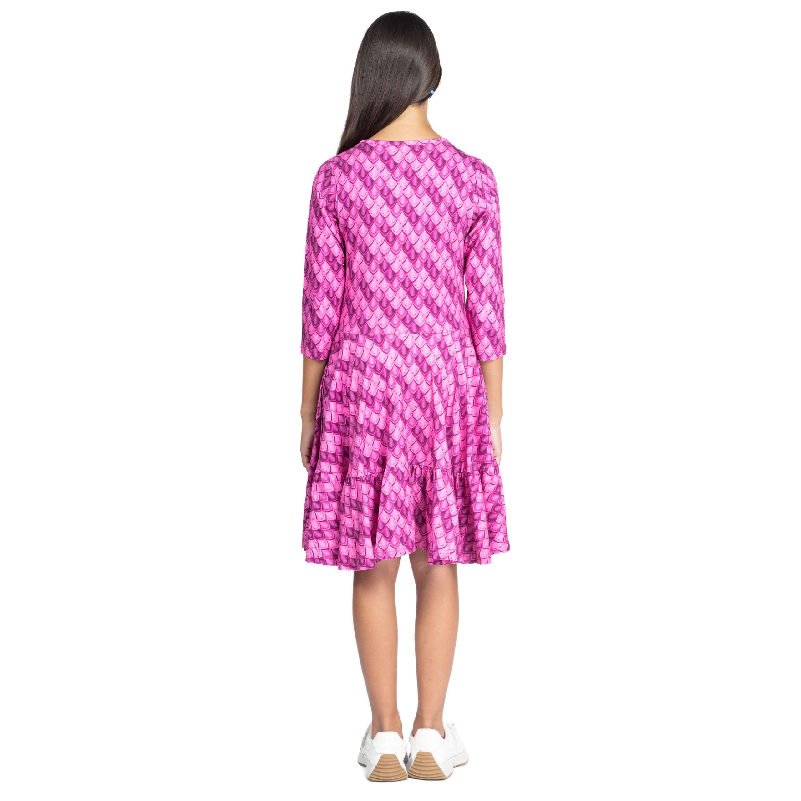 Dragon Scales 3/4th Sleeves Kids Twirl Dress with Frill