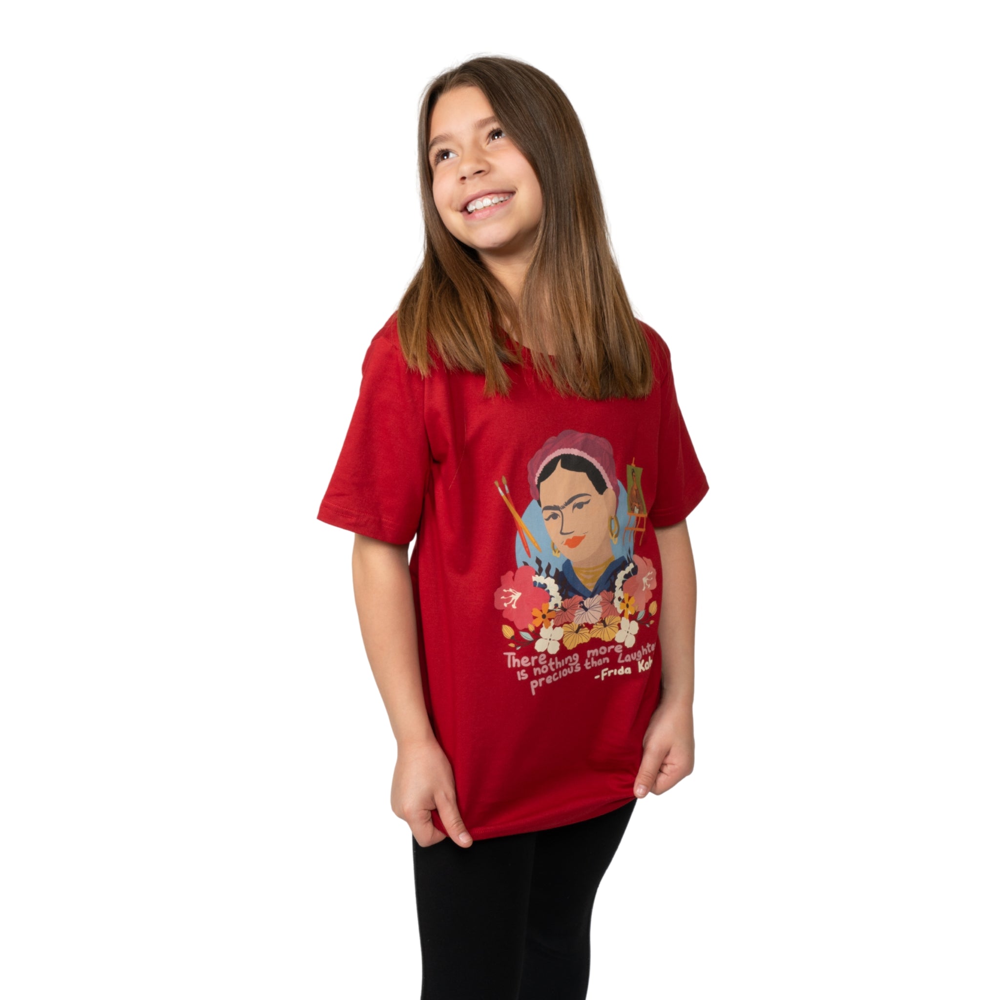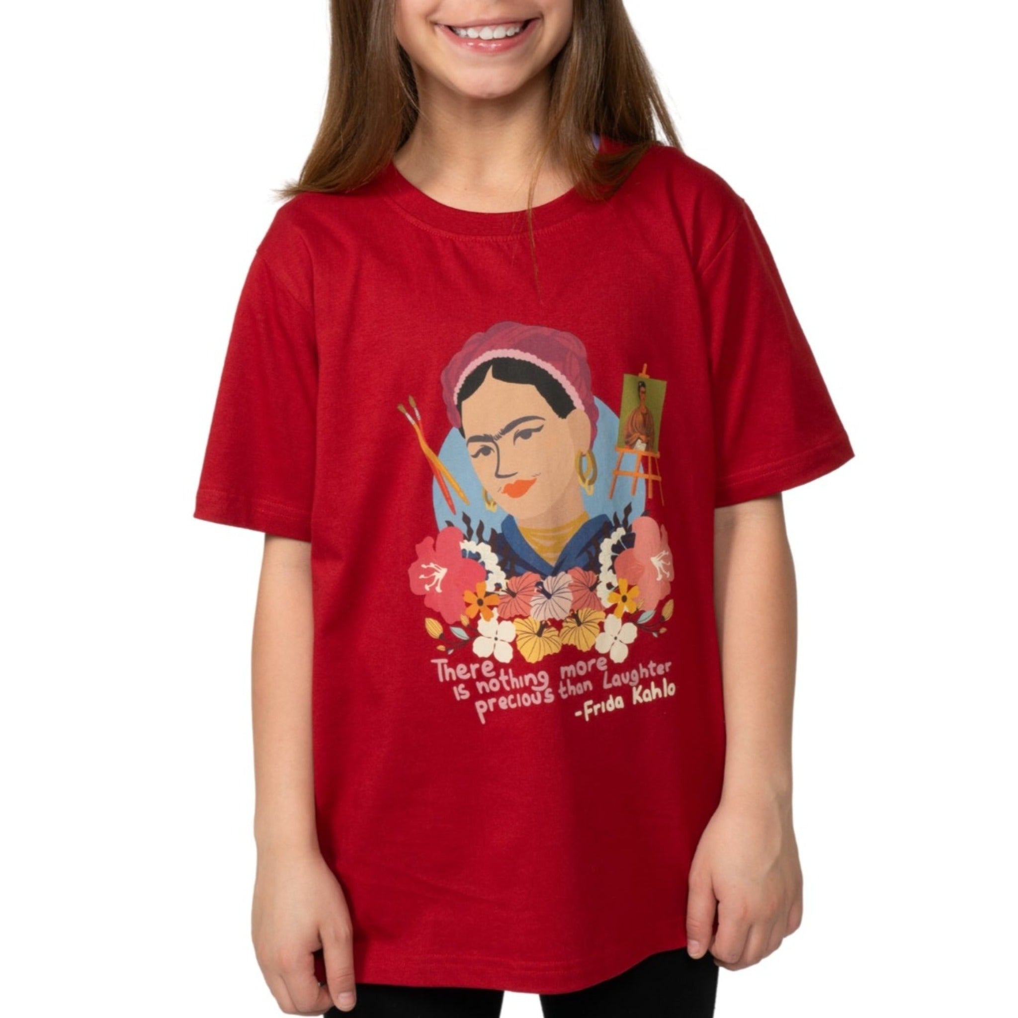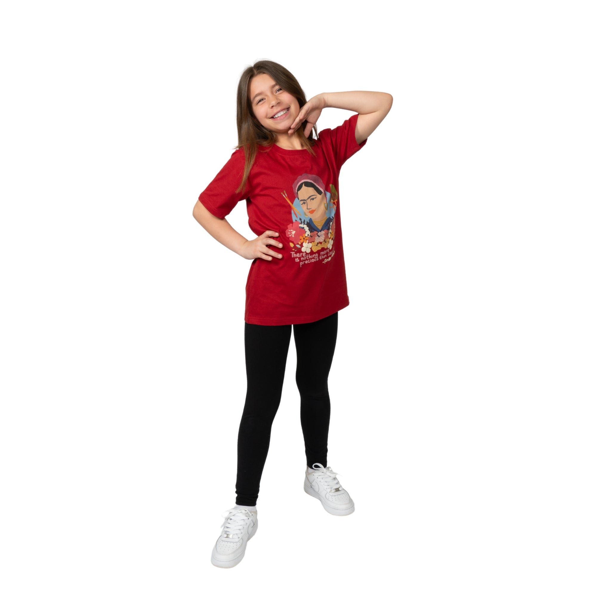 Many remember Frida Kahlo as an amazing artist who shared her passion and pain with vibrant colors that paid attention to indigenous culture and the real depiction of the female form. The paintings she created speak for themselves, that everyone should live life to the fullest, visualize everything within it as part of a whole. Frida’s iconic paintings now influence posters, pins, calendars, dolls and so much more. Become passionately inspired and remember Frida Kahlo while wearing this beautifully designed t-shirt!