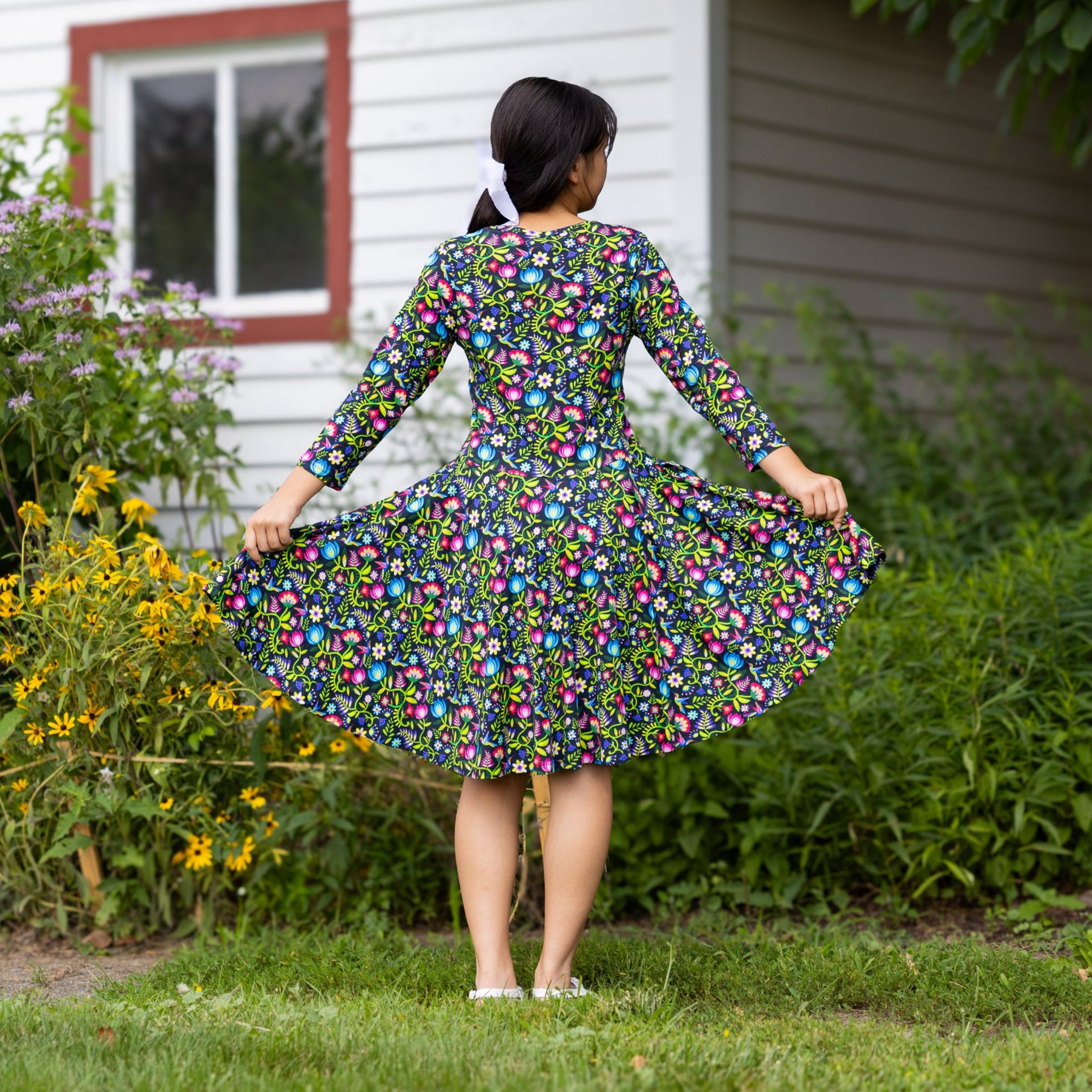 Hummingbird Paradise 3/4th Sleeves Kids Twirl Dress