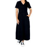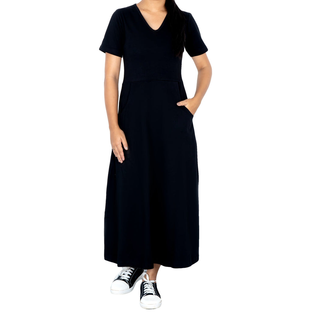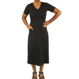 - Elbow Sleeve, v-neck, adult midi dress with pockets