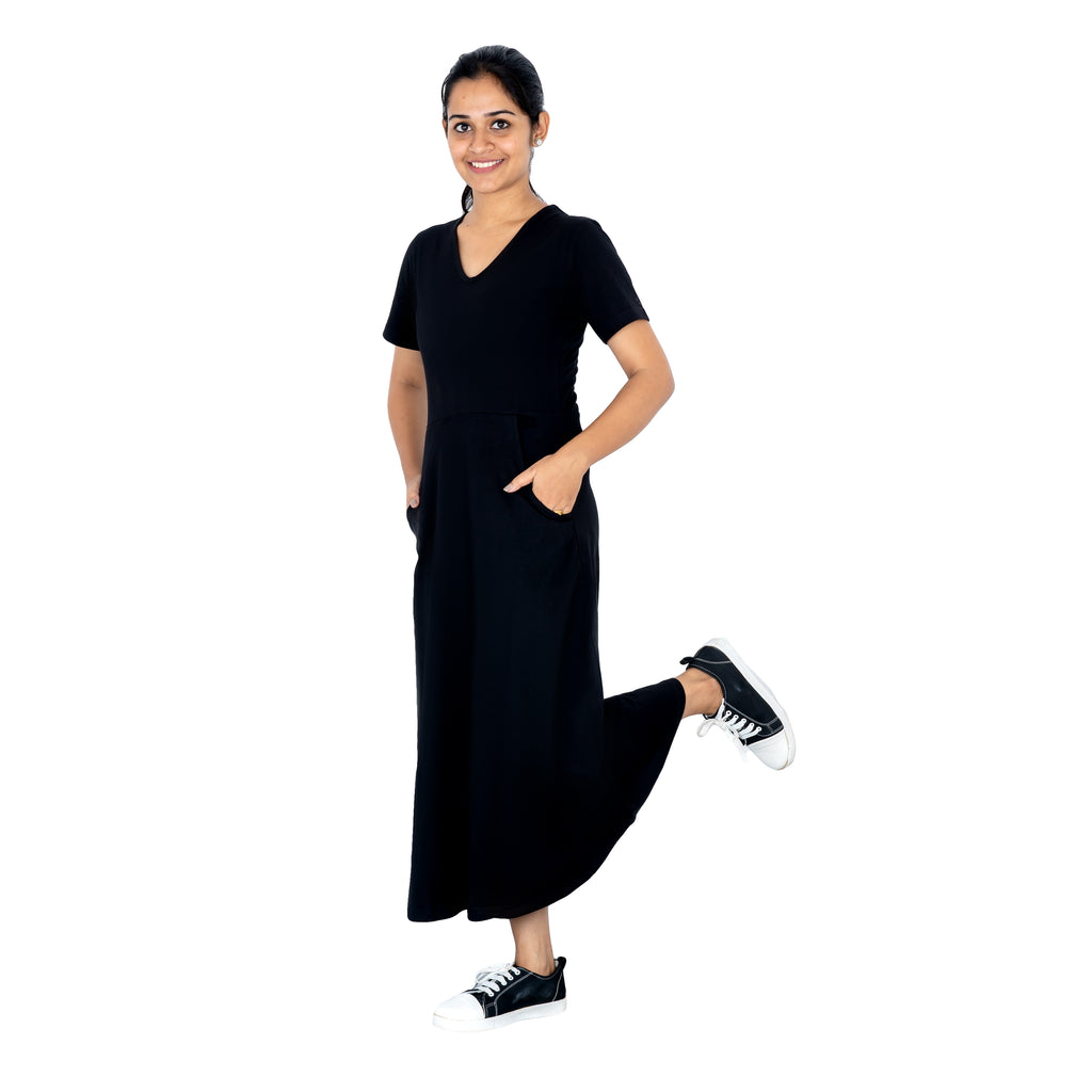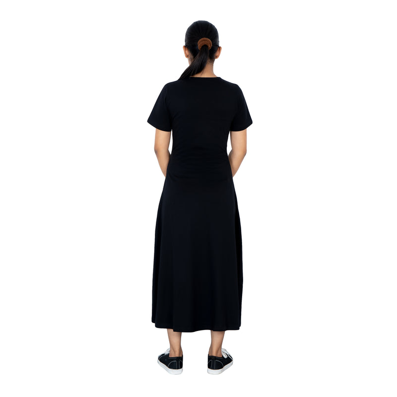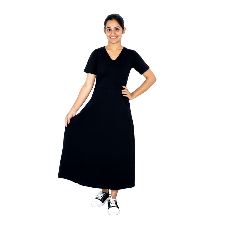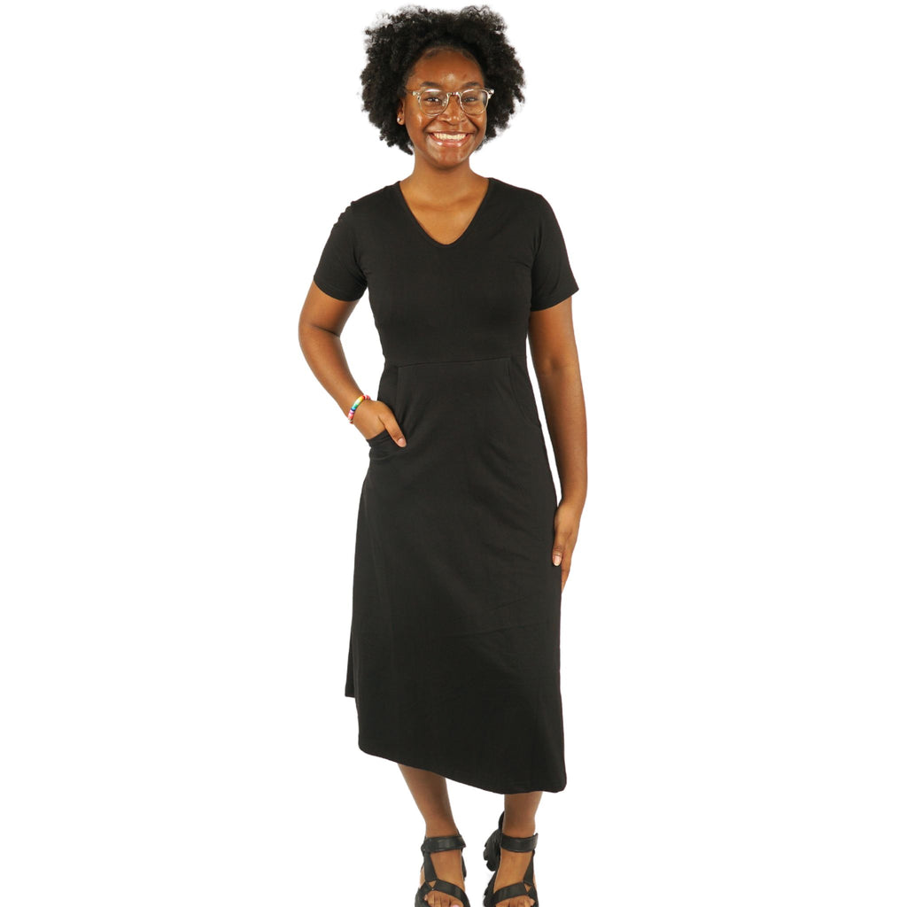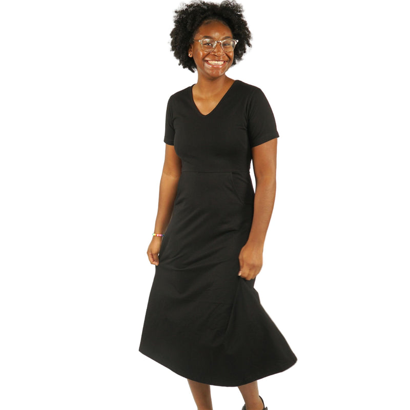 We designed this black dress so that you can wear with fun accessories! These dresses are made with our super soft cotton and they feel comfortable. Will this be a great spontaneous purchase? You decide!