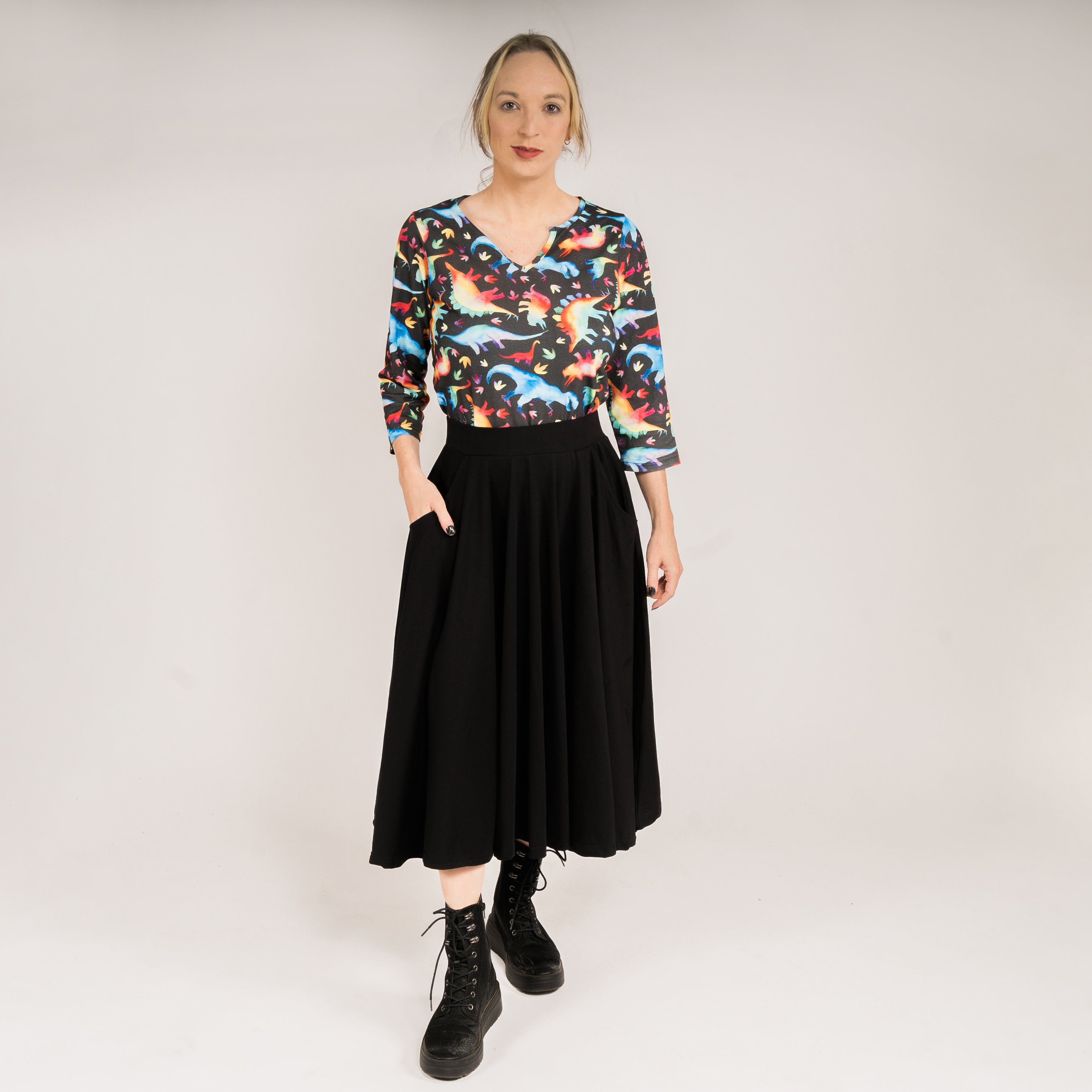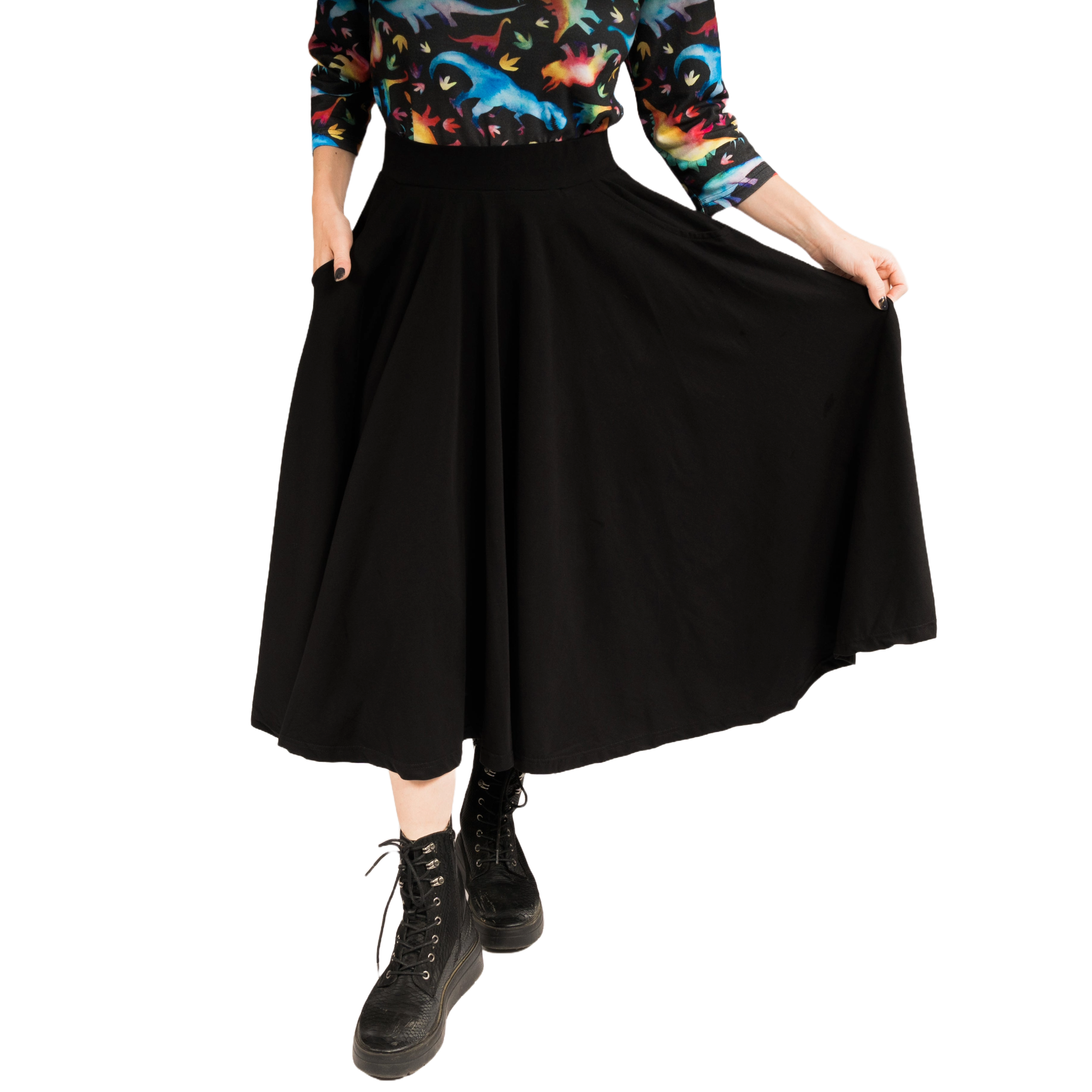 Named after the gemstone, onyx is a variety of stone that comes from Chalcedony. This solid black skirt was designed so that you can wear it with fun accessories! Give this skirt a twirl and have endless fun with styling!