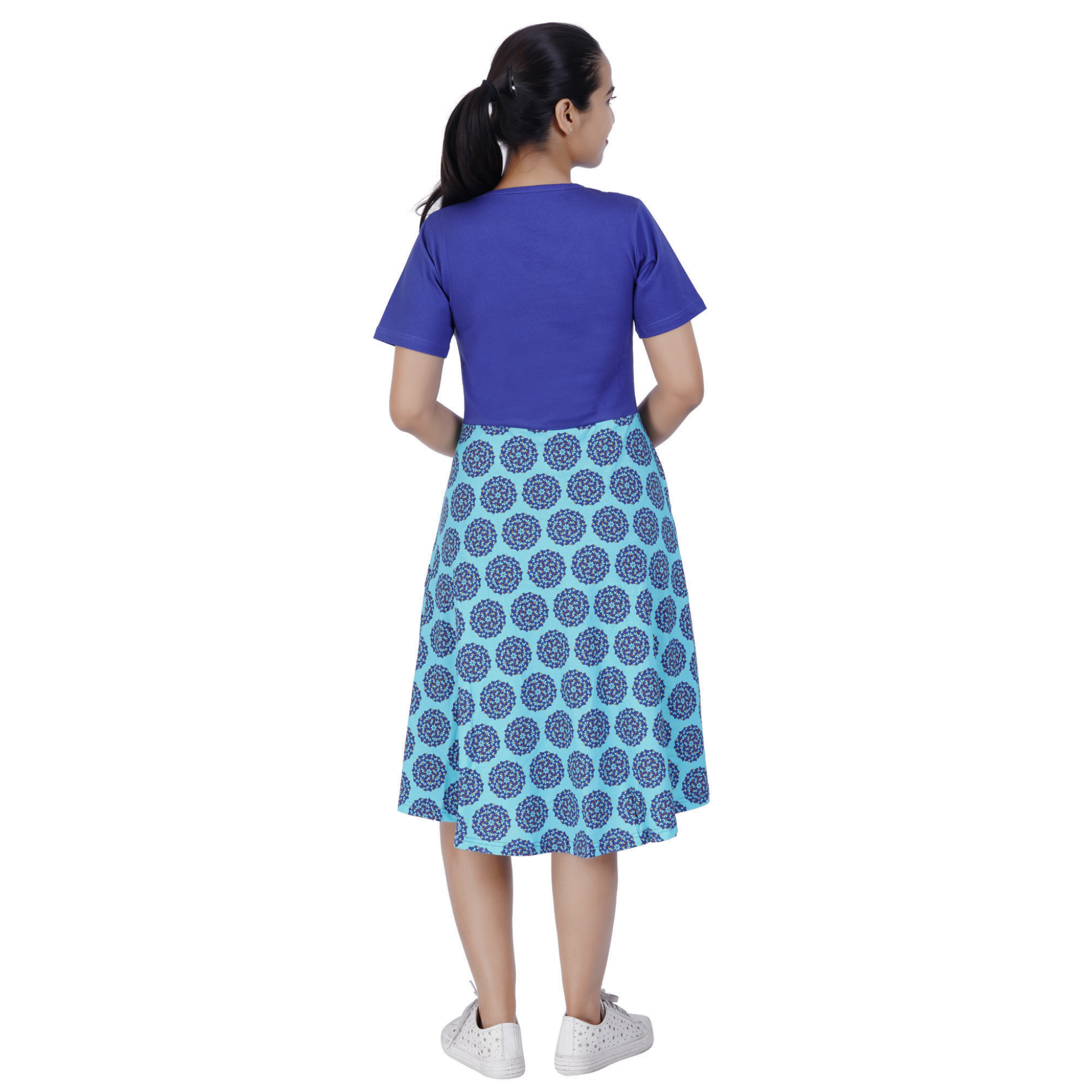- Color: Blueish-purple top with light blue base color on the skirt with blue and orange penrose tiling design