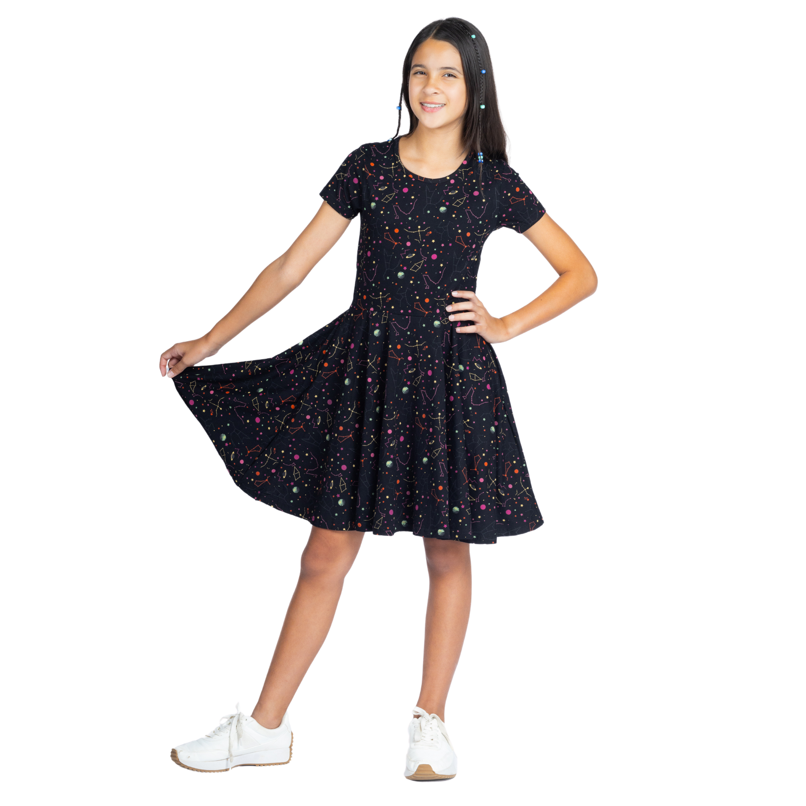 Rainbow Constellations Glow-in-the-Dark Kids Twirl Dress