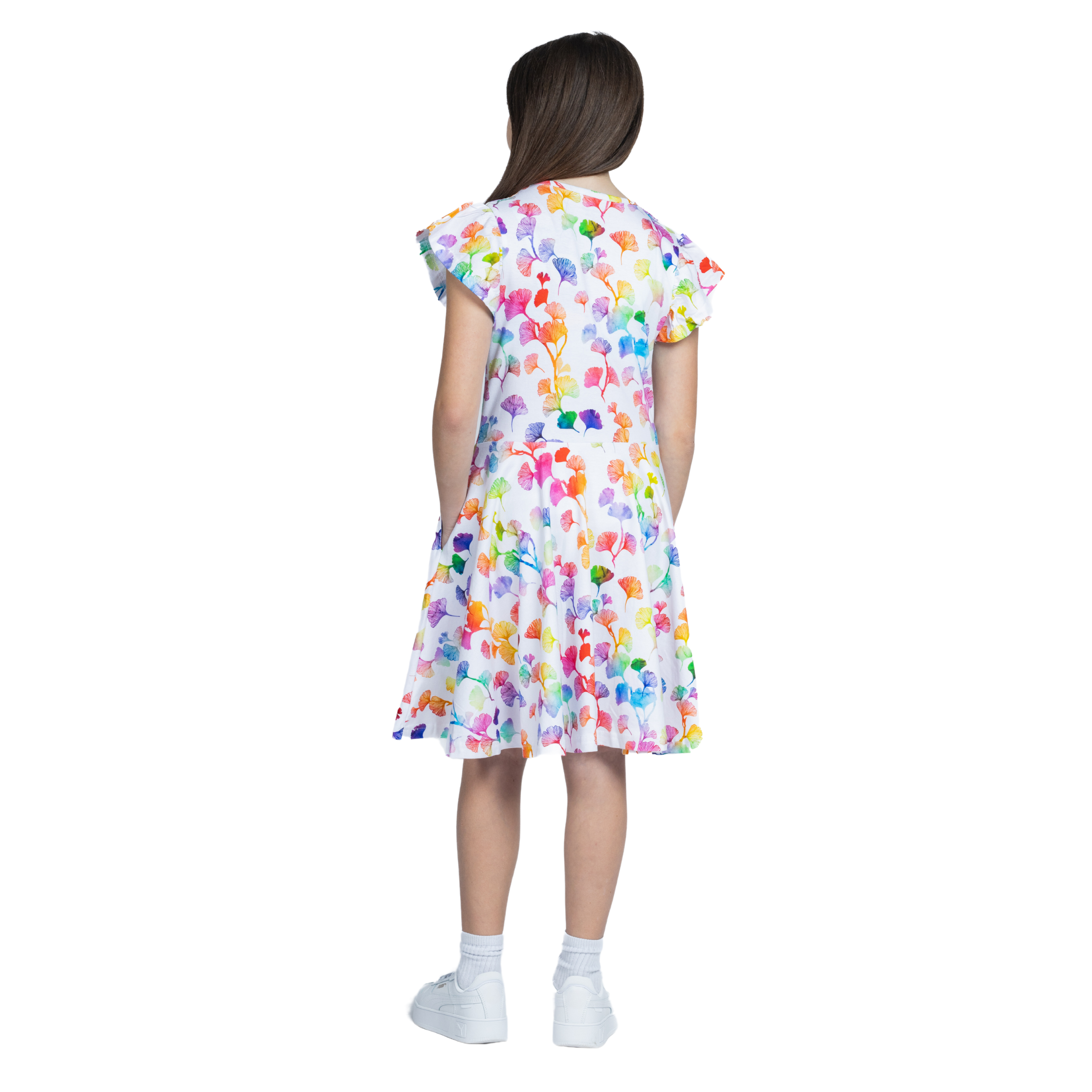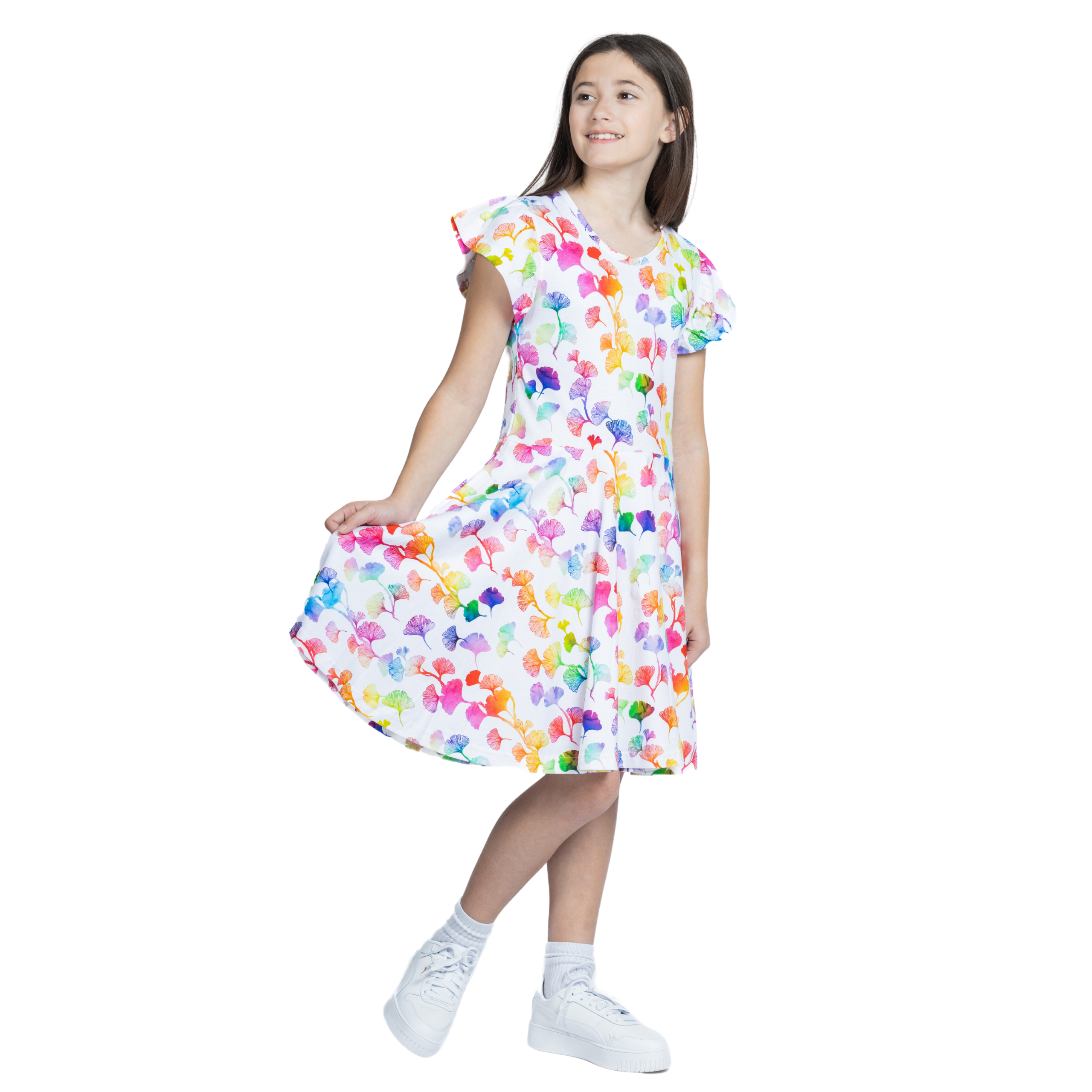 Rainbow Ginkgo Leaves Kids Twirl Dress