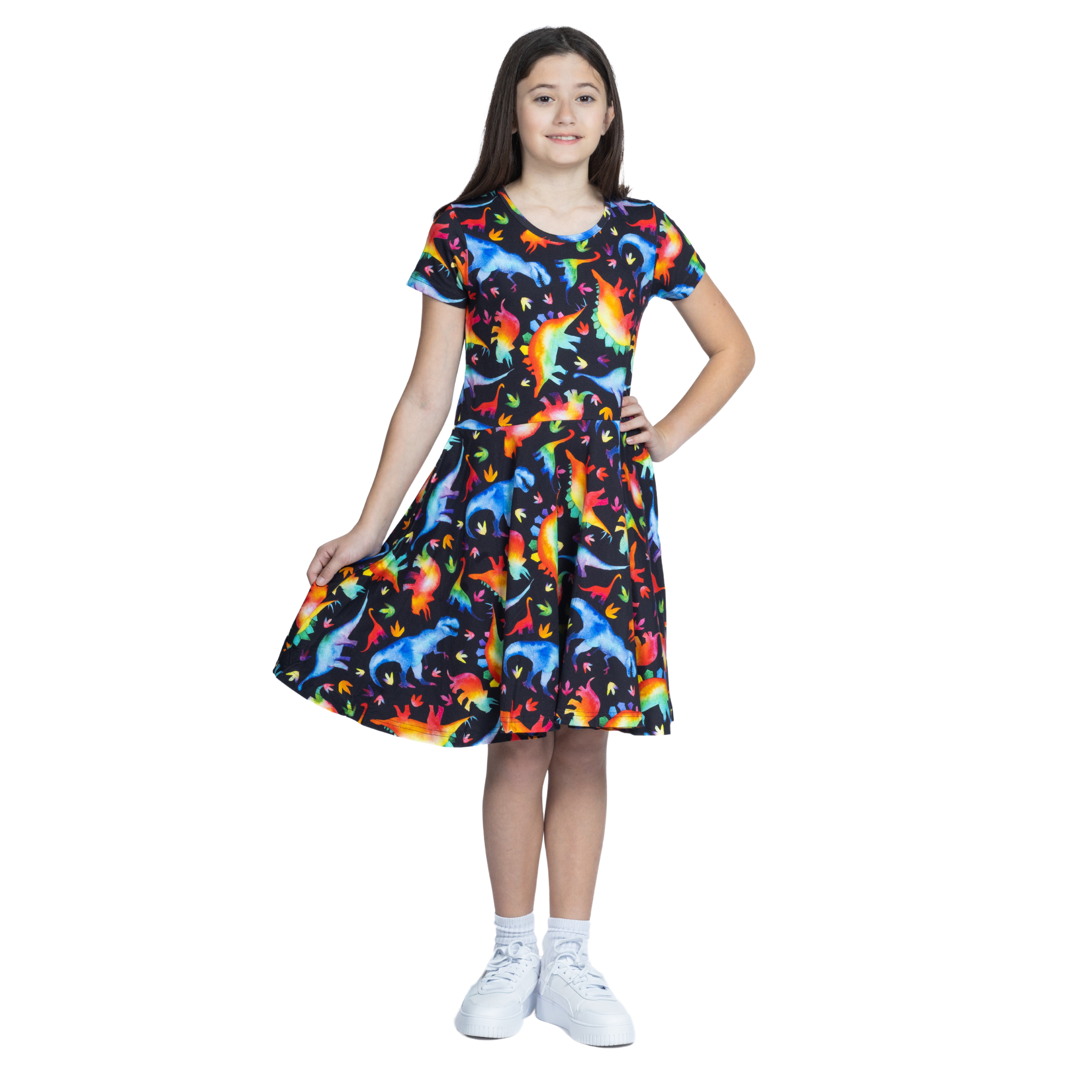 - Short sleeve, kids' fit and flare twirl dress