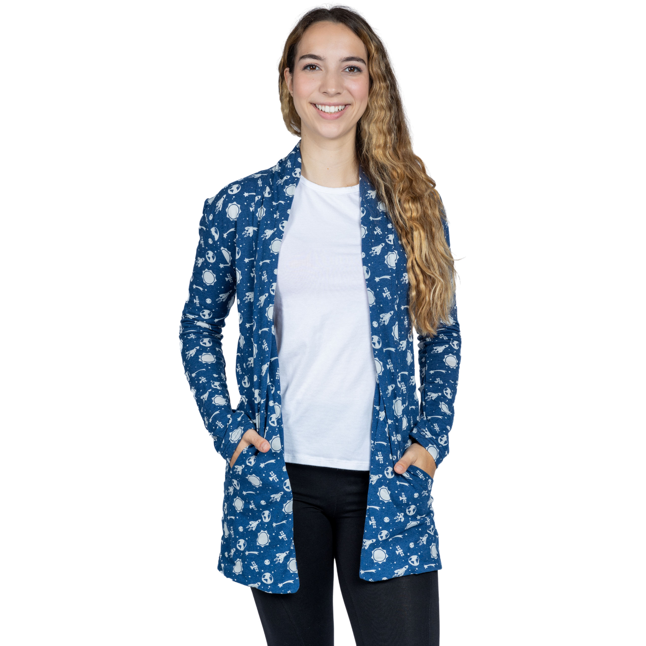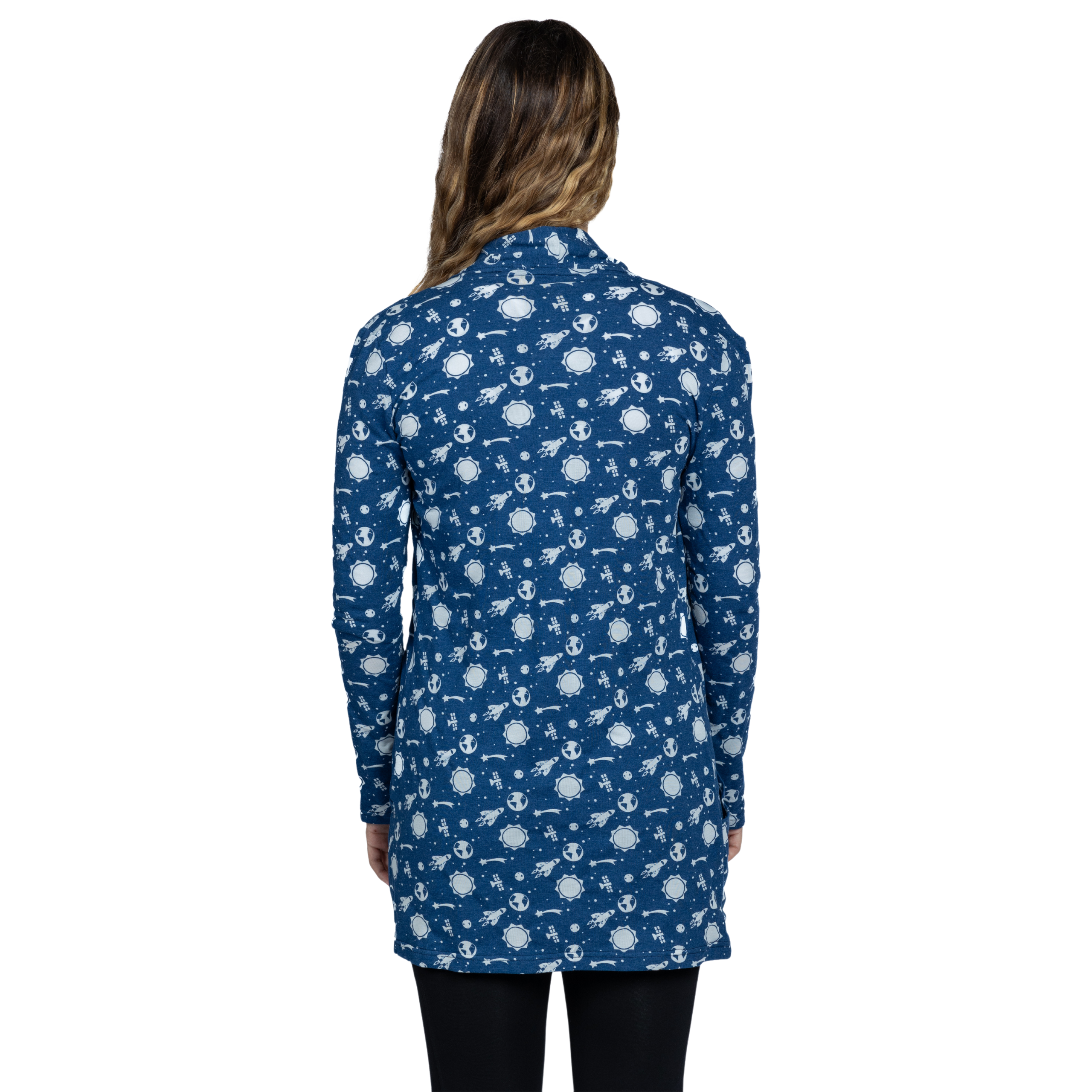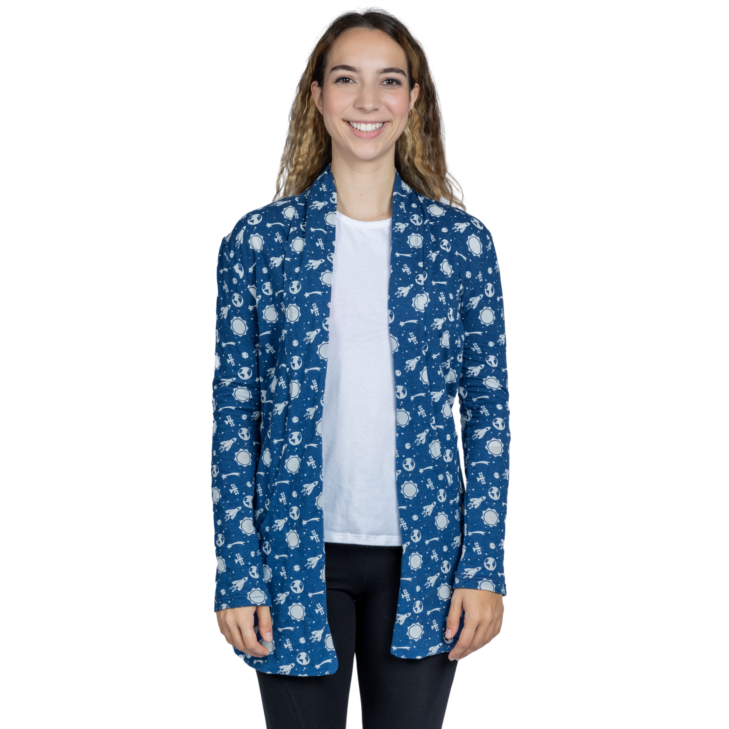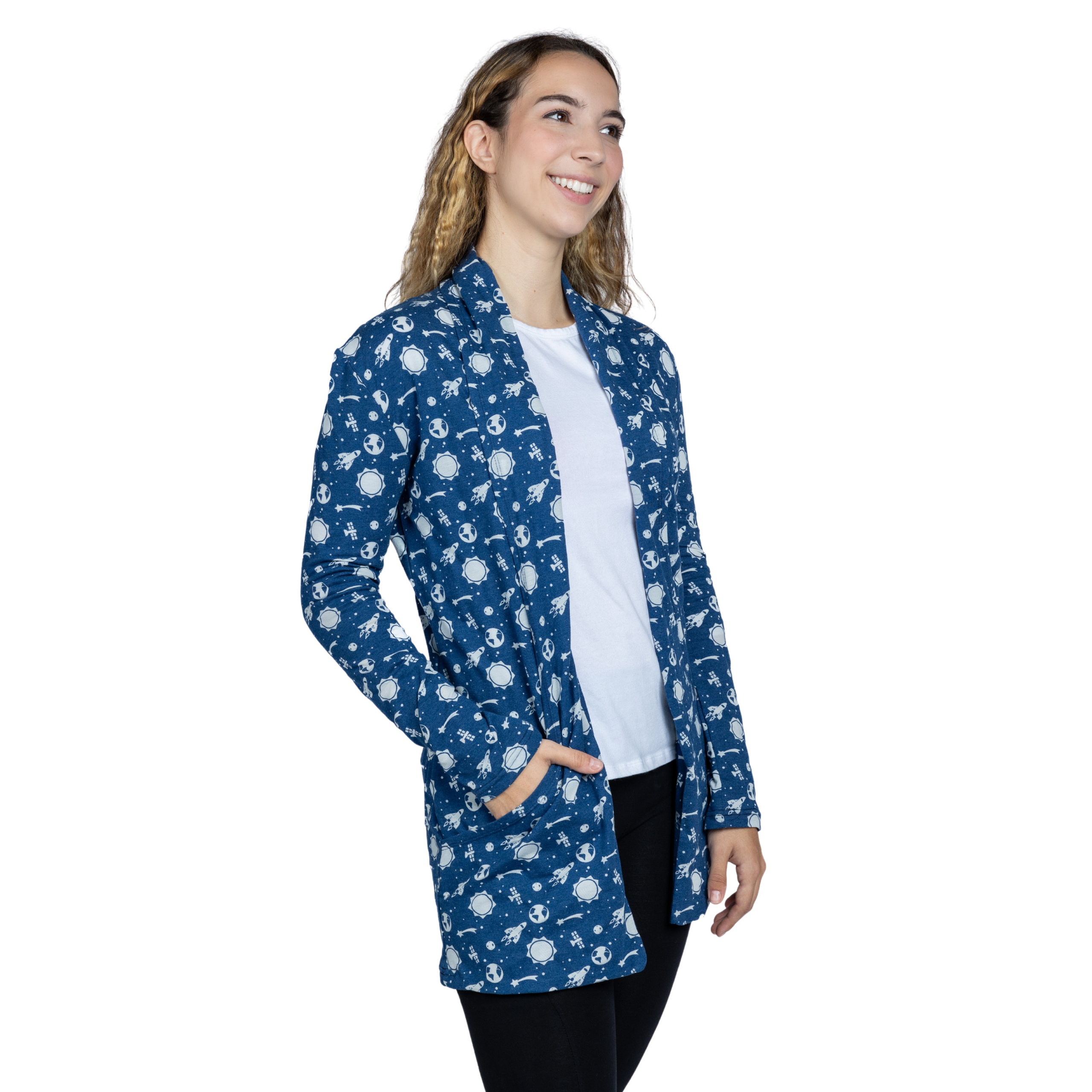 Do you dream about landing on the Moon, or Mars, or even viewing the rings of Saturn? Through scientific advancements, all this and more is possible! Prepare to explore the universe in this fun astronomy-inspired cardigan!