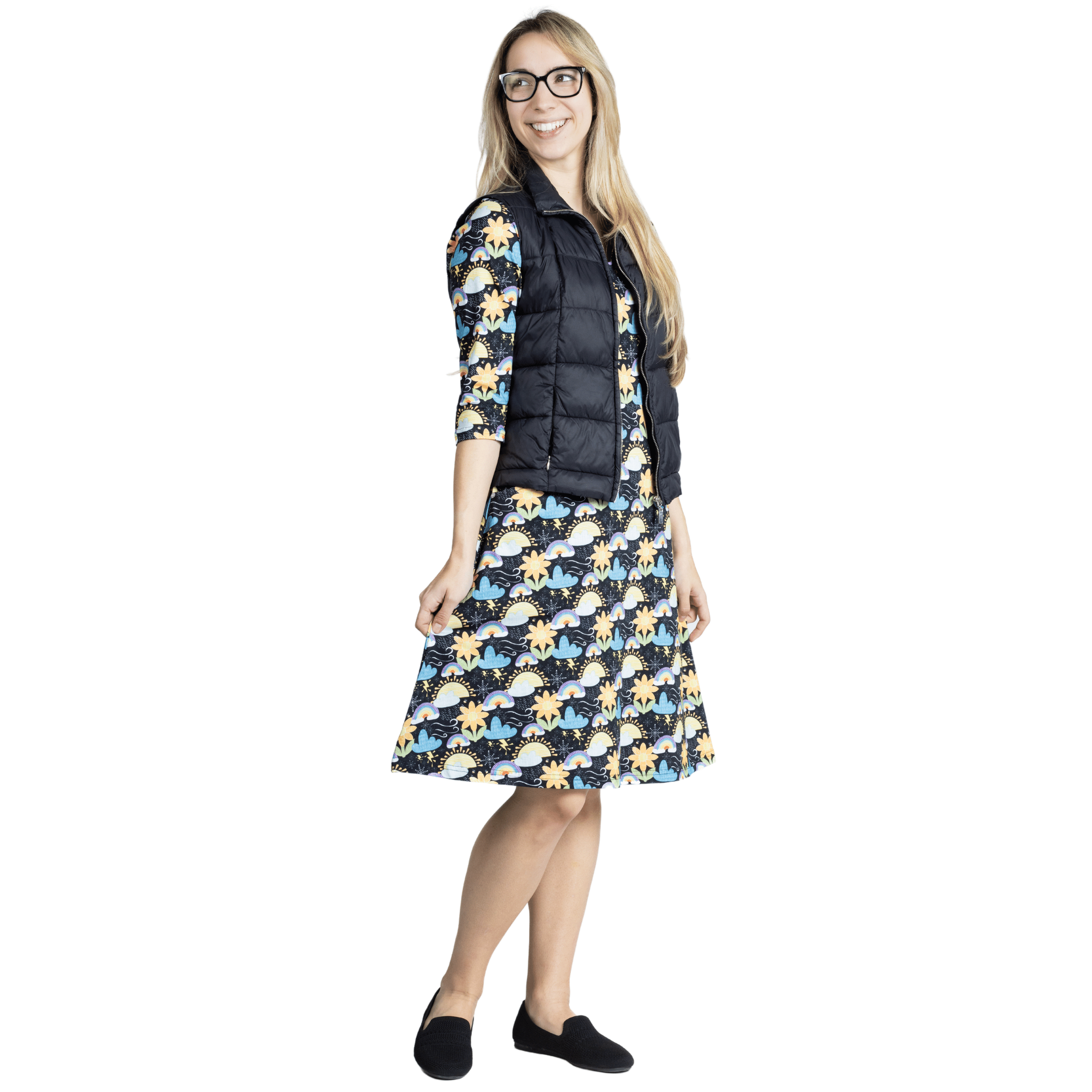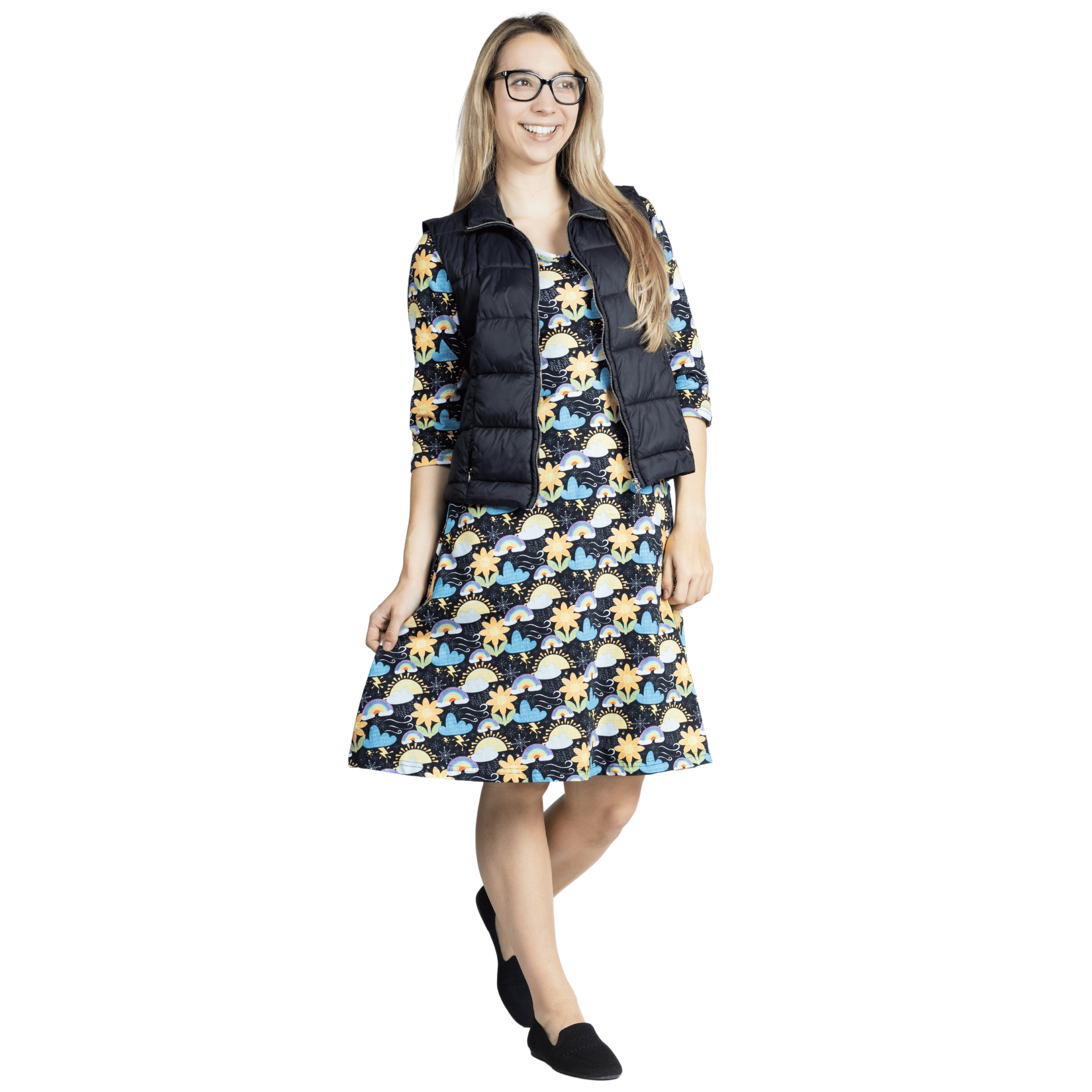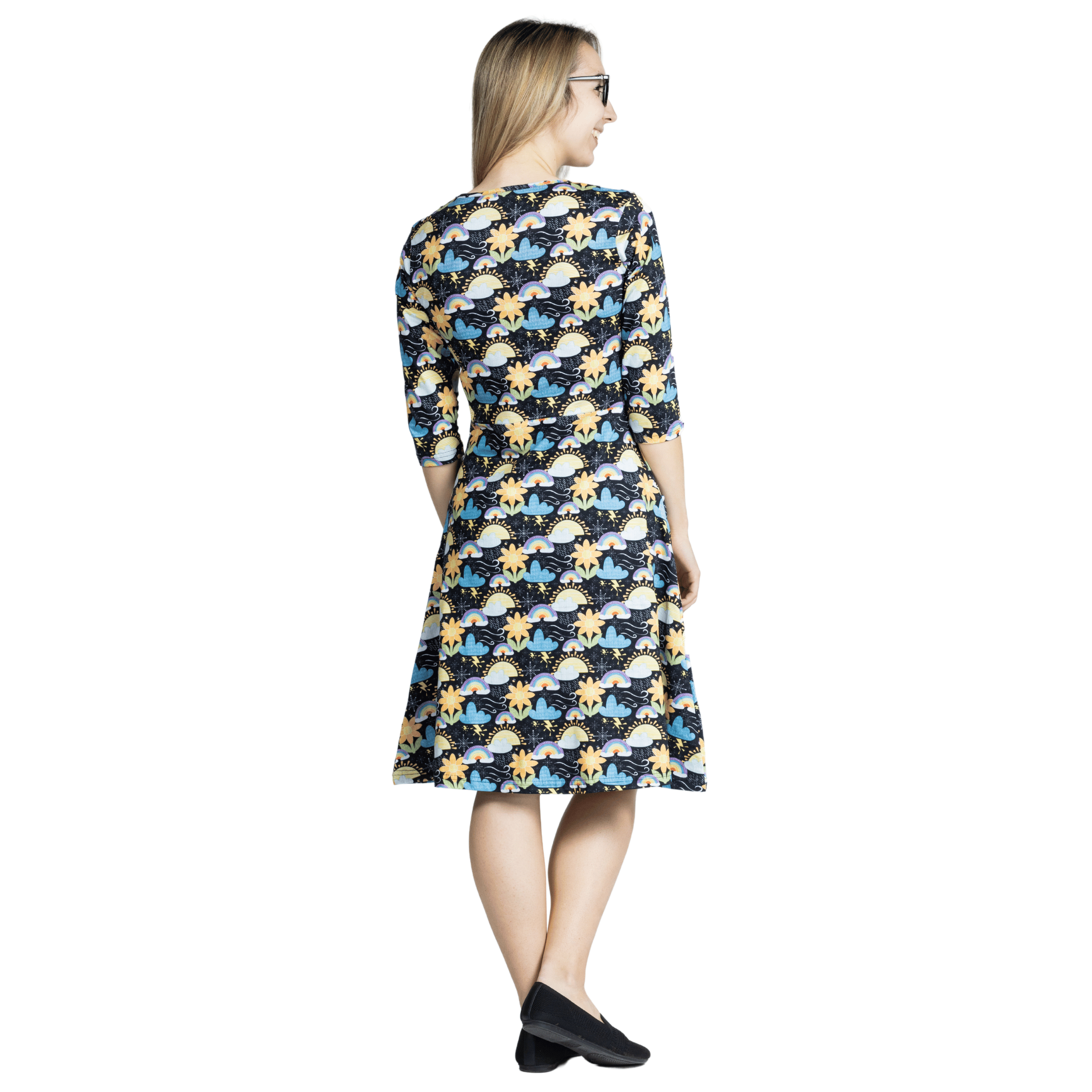 Weather 3/4th Sleeves A-Line Dress (With Waist Seam)